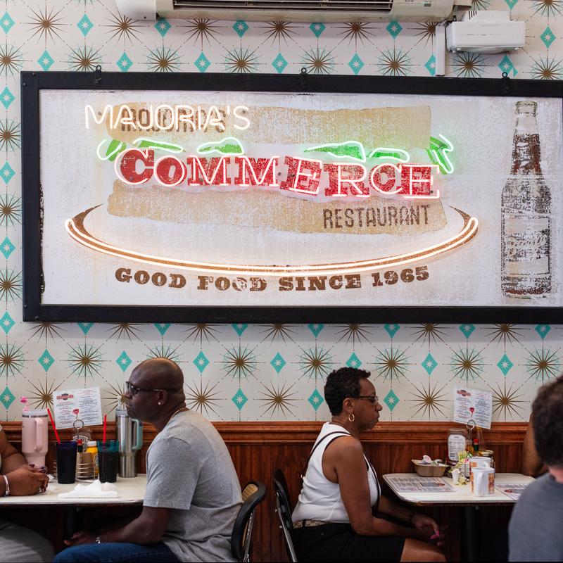 The son of Sicilian immigrants, John Majoria was part of the family that started Majoria Drugs and Majoria’s Grocery in Boutte. He got into the restaurant business with his lifelong friend, Bruce Griffen, when they bought the now-long-gone downtown cafe Mumphrey’s on St. Charles Avenue. They then bought the Commerce Restaurant about a year after it opened. There was no question back then that New Orleans staples would be their bread and butter. In the background, the constant clunking ring of proprietor Brett Majoria working the ancient cash register can be heard. Good-natured and soft-spoken, he’s always here, surveying the room from the till like a captain at the helm. Brett Majoria started working by his father’s side here after graduating college in 1992, and he took over not long before Johnny's passing in 2013.